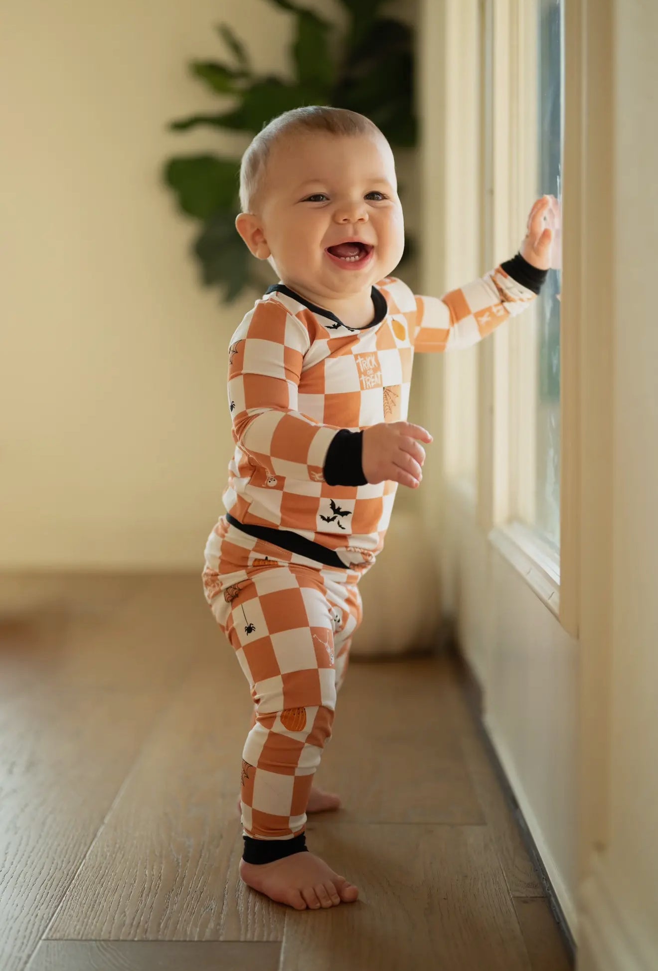 Check or treat two piece bamboo pajama