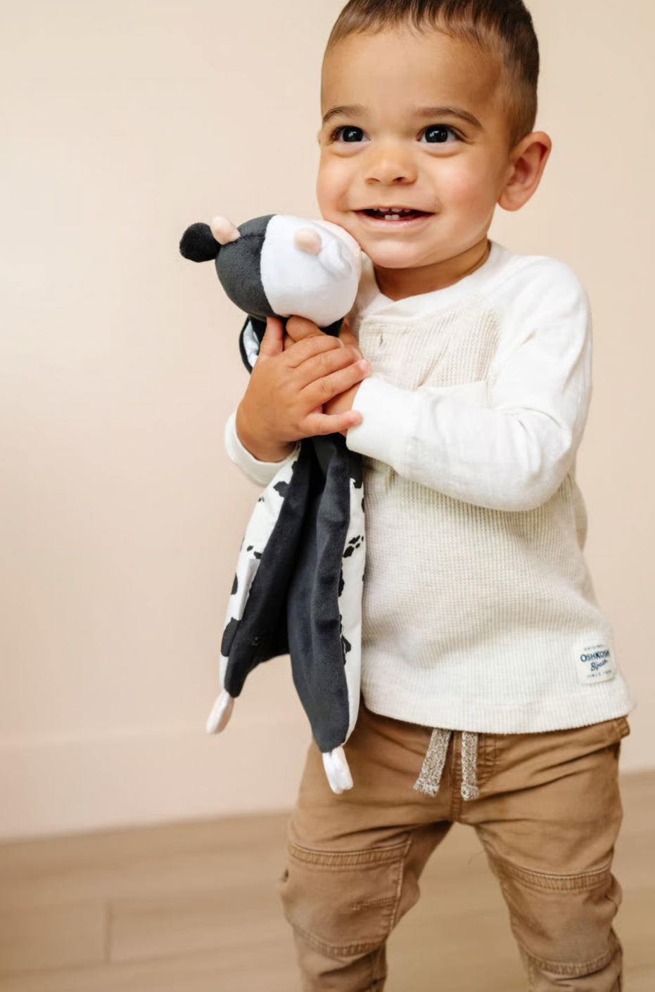 Just the right size to take on the go, this snuggly lovey features a squishy head, and a super-soft fabric to comfort baby.