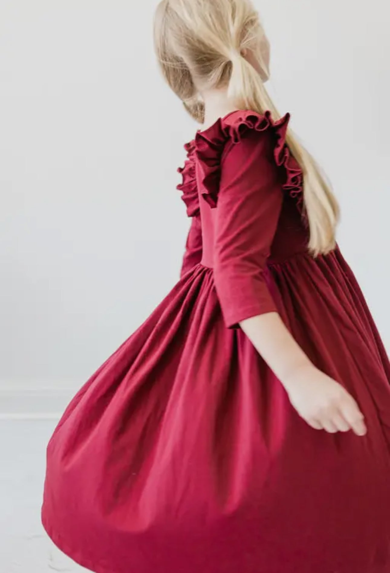 Scoop back and ballet neckline make getting dressed a breeze. Full skirt makes twirling extra fun.