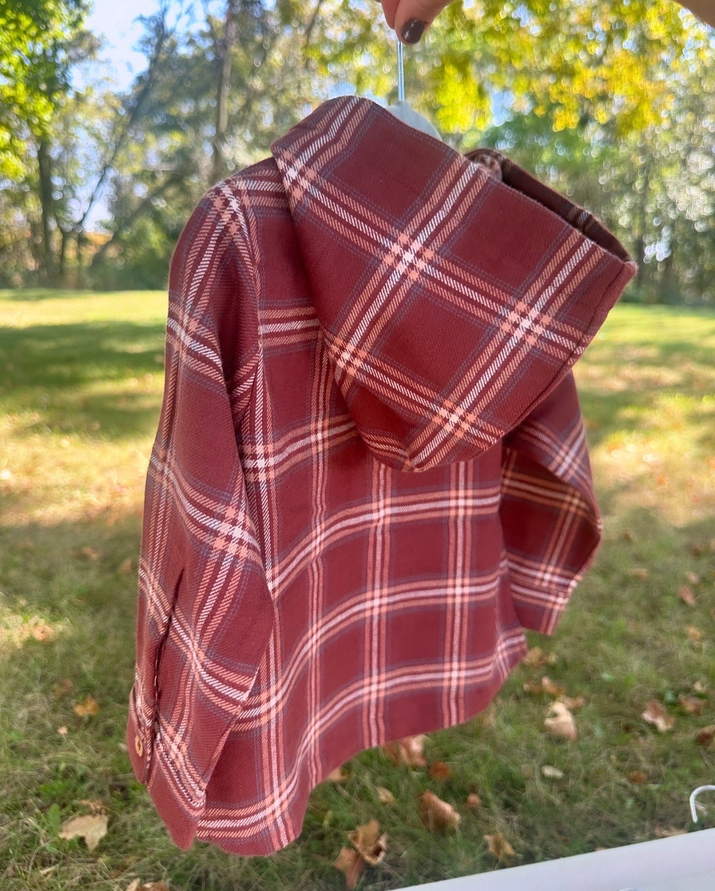 Made with 100% cotton flannel. Featuring coconut button detail and hood for cold days.