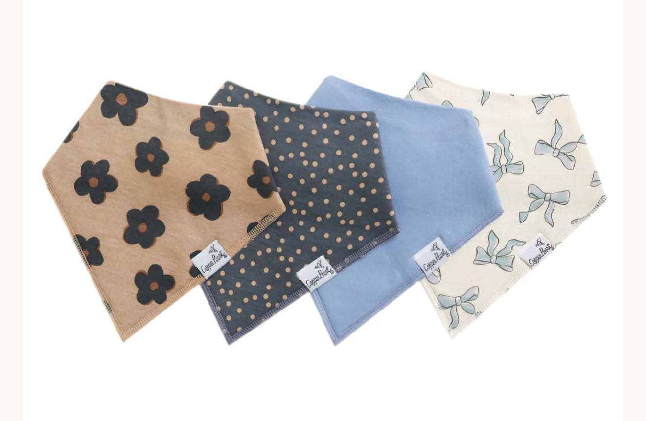 Package includes four stylish bandana bibs perfect for any outfit and occasion.