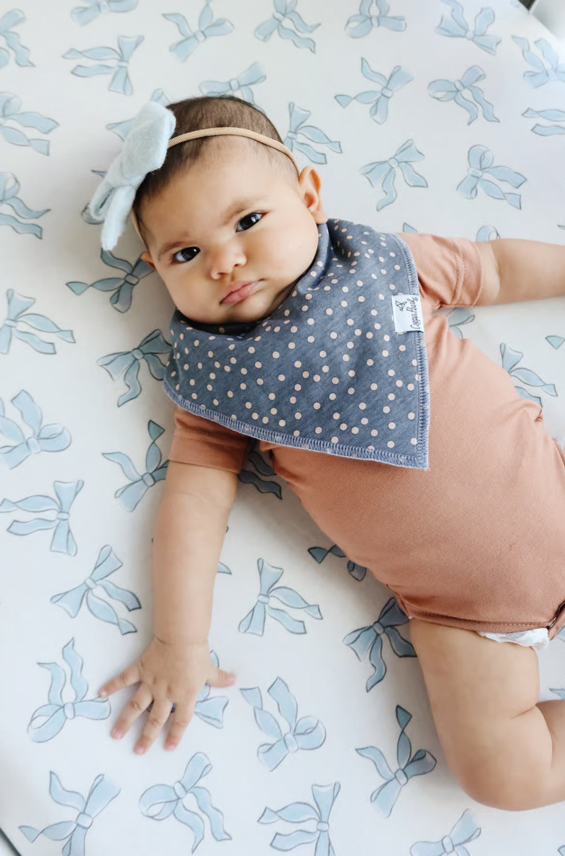 These stylish drool bibs are made of 100% absorbent cotton on the front and 100% polyester fleece on the back. The front of the baby bib is a stylish knit fabric and the back is a super soft fleece that keeps your baby completely dry even with the drooliest of babies. Great for teething babies!