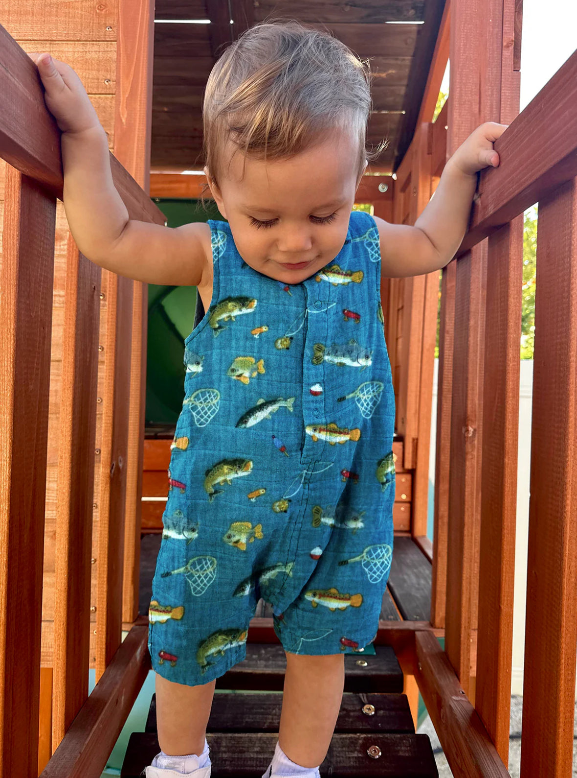 Gone fishing muslin romper