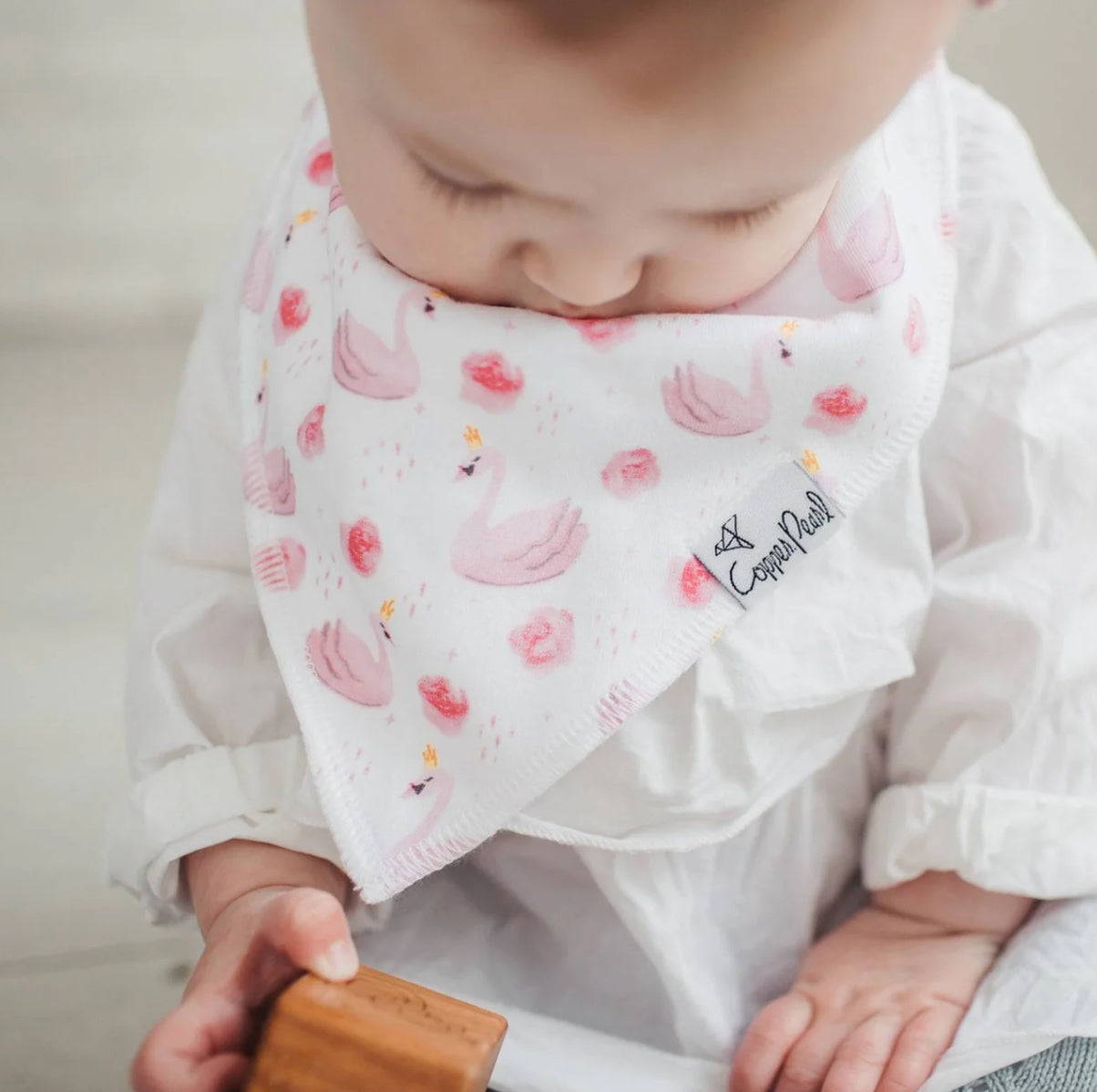 These stylish drool bibs are made of 100% absorbent cotton on the front and 100% polyester fleece on the back. The front of the baby bib is a stylish knit fabric and the back is a super soft fleece that keeps your baby completely dry even with the drooliest of babies. Great for teething babies!