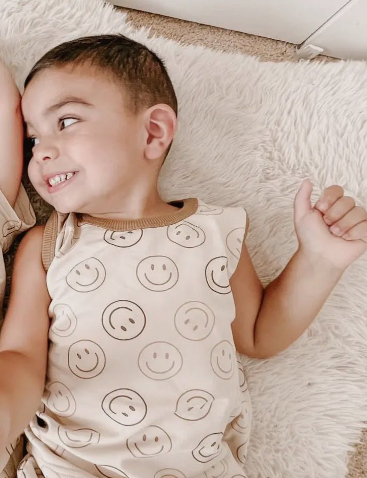 Introducing our Smileys Cotton/Spandex Short Set, designed to bring joy and comfort to your summer wardrobe. Crafted from a premium blend of cotton and spandex, this set combines softness with stretch for a fit that feels as good as it looks.