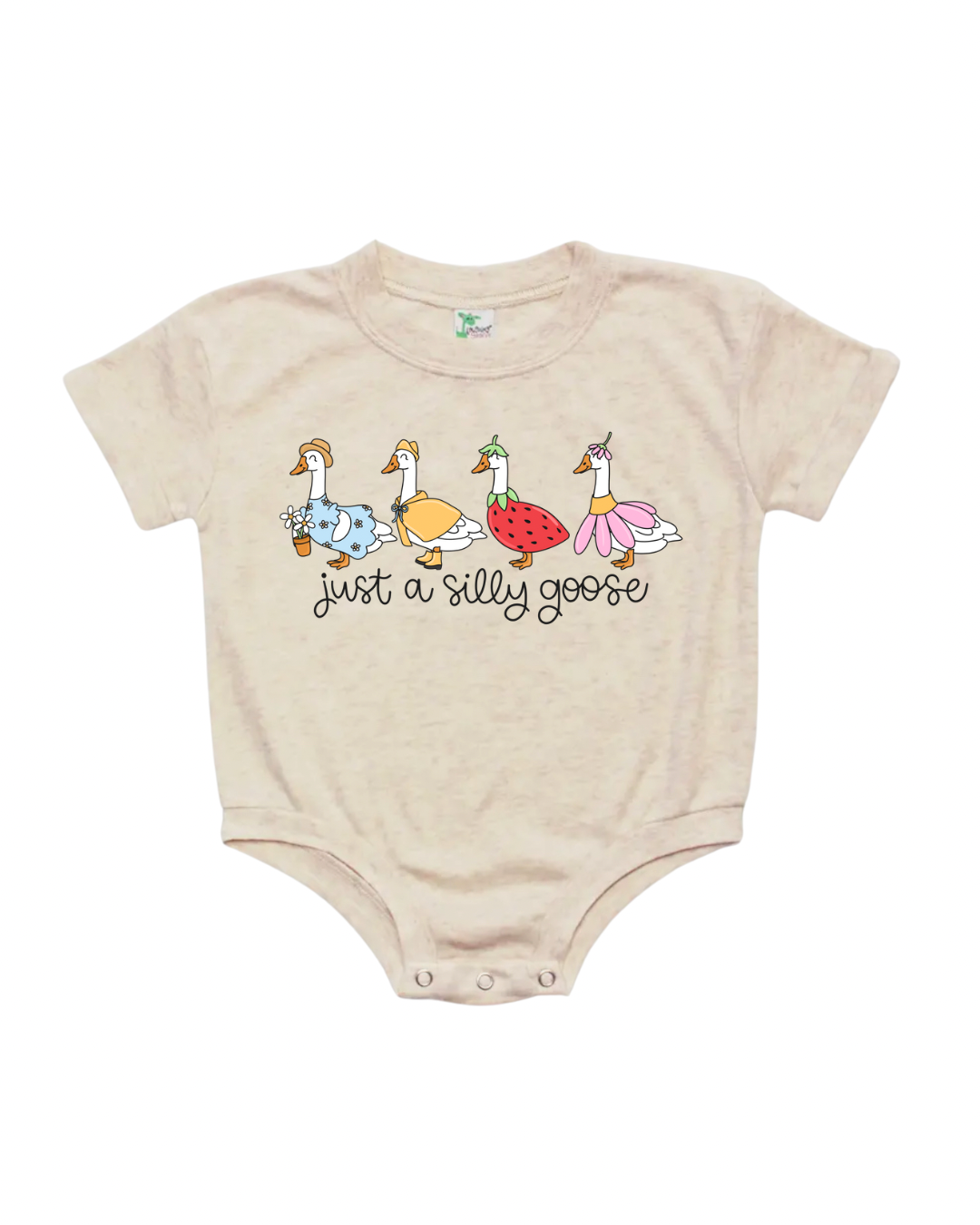 Hey silly goosies. You’ll love this poly/cotton blend tshirt or bubble romper!